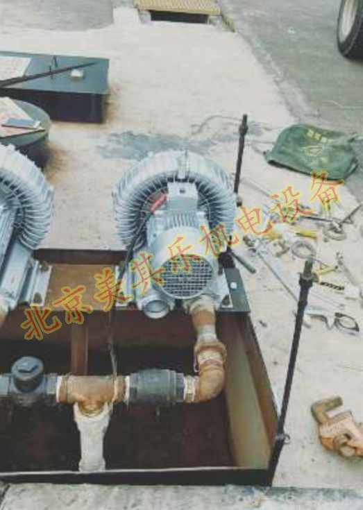 小區污水曝氣處理,采用小型2.2kw漩渦氣泵2臺(一用一備模式)總管使用一根主管,每個氣泵分管處配有單向閥,防治氣泵開機機,別一臺氣泵串氣,可用于2米左右的水深使用,所產生的增氧氣泡均勻,曝氣迅速,要長時間不停機運行,噪音小,對周邊的居民沒有任何影響,不擾民,安全可靠。