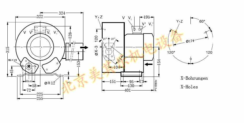 雙葉輪2.2kw漩渦氣泵尺寸圖: