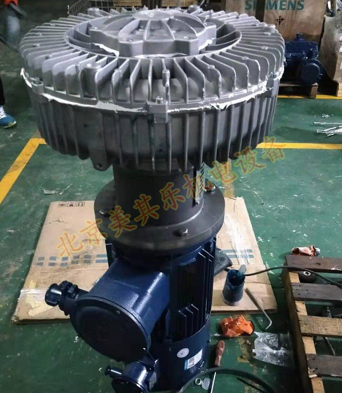 防爆變頻鼓風機定制,圖為上海某客戶定制的2GH9系列高壓風機,采用變頻防爆電機驅動,突出加長軸,前端采用連軸器連接帶動葉輪旋轉,加長密封盤,可杜絕水汽進入電機影響運行。
